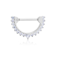 Half-circle nipple ring 14g gold and silver with CZ stones implant-grade titanium 1 piece - Silver / 14G/1.6mm x 12mm / 1 Piece