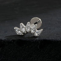 Helix ear piercing stud with five marquise clear diamond cz stones flat ear stud - 16G/1.2mm / Silver x 4mm