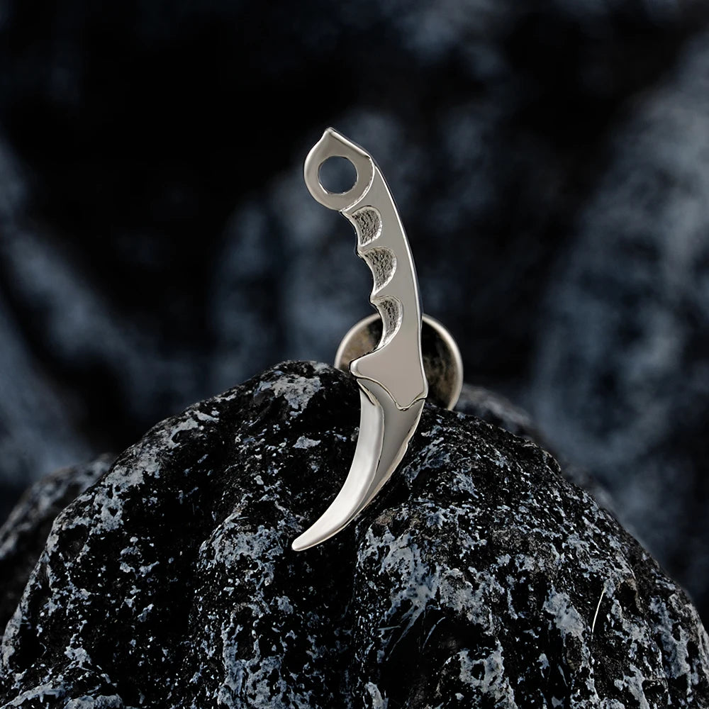 Knife stud earring cool and unique ear stud ear piercing stud for men - 16G/1.2mm / Silver x 4mm