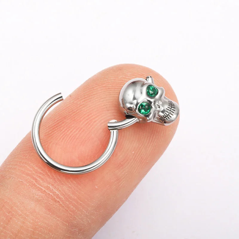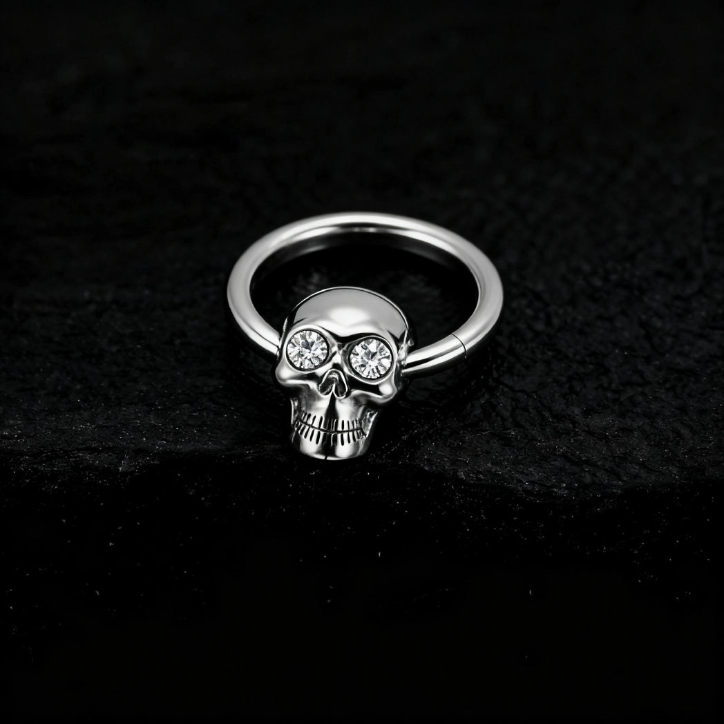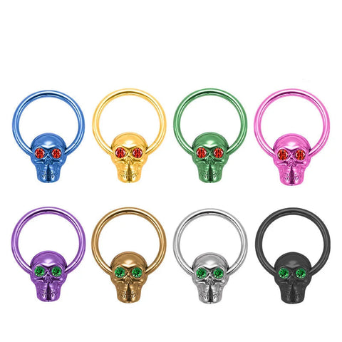 Skull nose ring in black silver gold pink green blue purple skull captive bead ring titanium piercing Udsalg