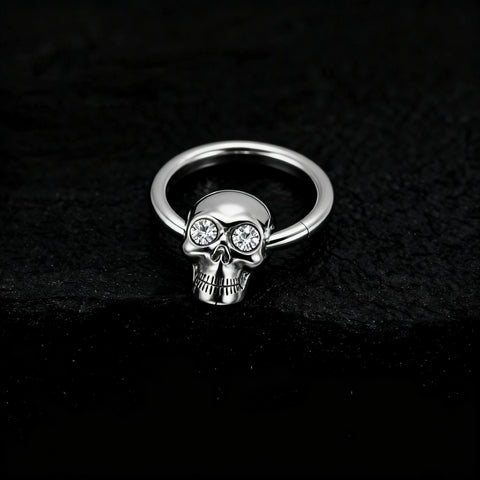 Skull nose ring in black silver gold pink green blue purple skull captive bead ring titanium piercing - 16G/1.2mm x 10mm / Silver x Black