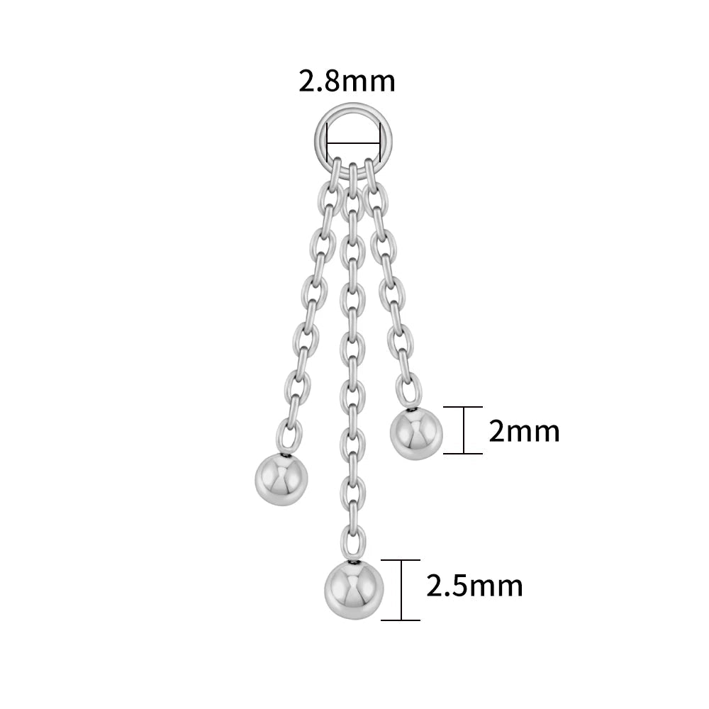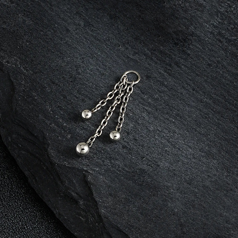 Ball chain charm with three dangling balls titanium piercing charms - Silver