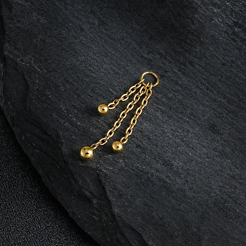 Ball chain charm with three dangling balls titanium piercing charms Udsalg