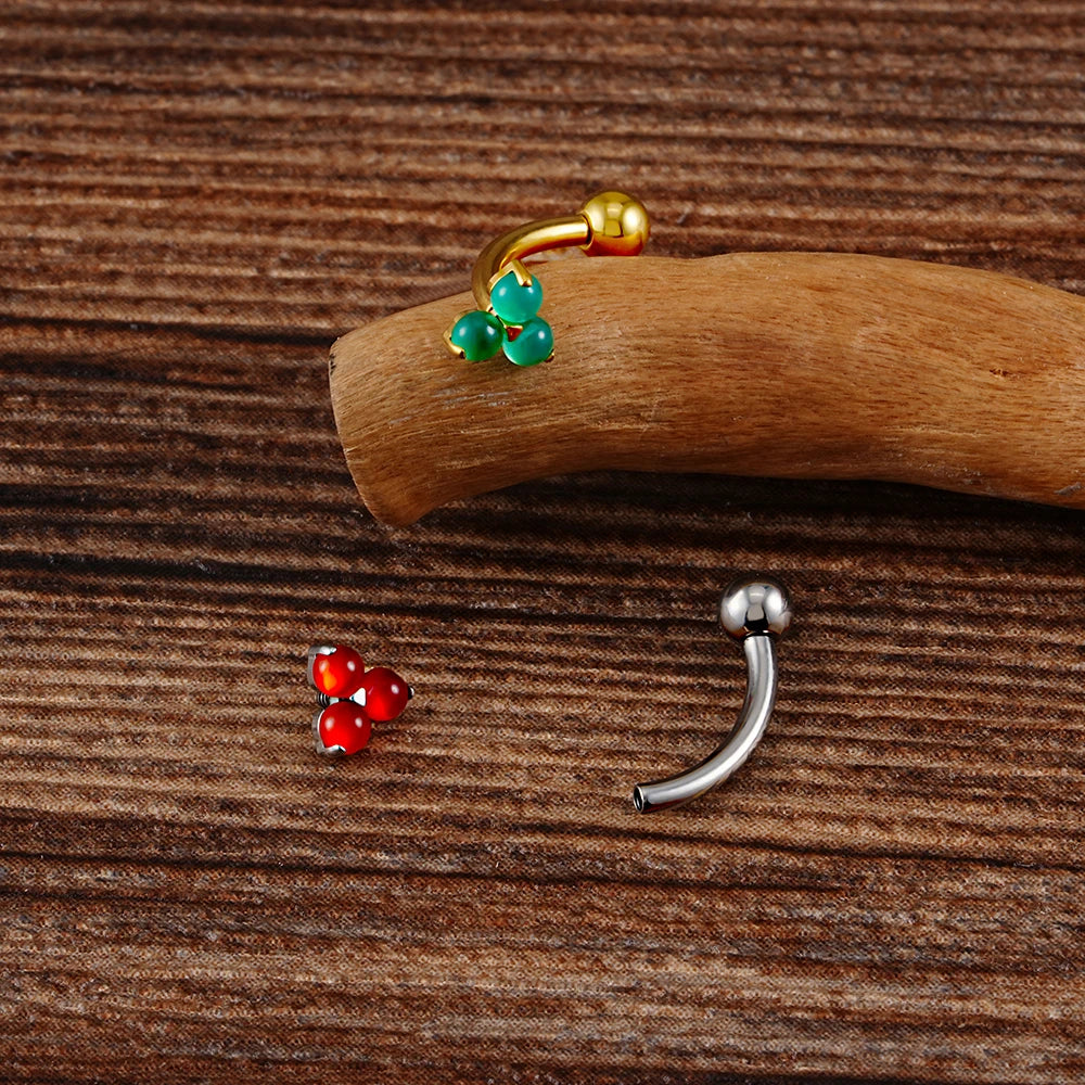Buet barbell ørepiercing med røde karneol naturlige ædelsten kort rook piercing Udsalg