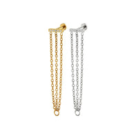Muschelketten-Ohrring mit drei Ketten und Diamanten, 16G-Titan-Muschelohrstecker mit flacher Rückseite und Kette - Silber x 16G/1,2mm x 6mm x 26mm