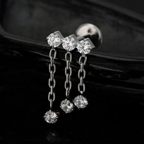 Schwebender Helix-Kettenohrring mit klaren CZ-Steinen und drei Ketten, Titan-Ohrstecker 16G Verkauf