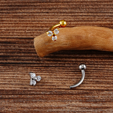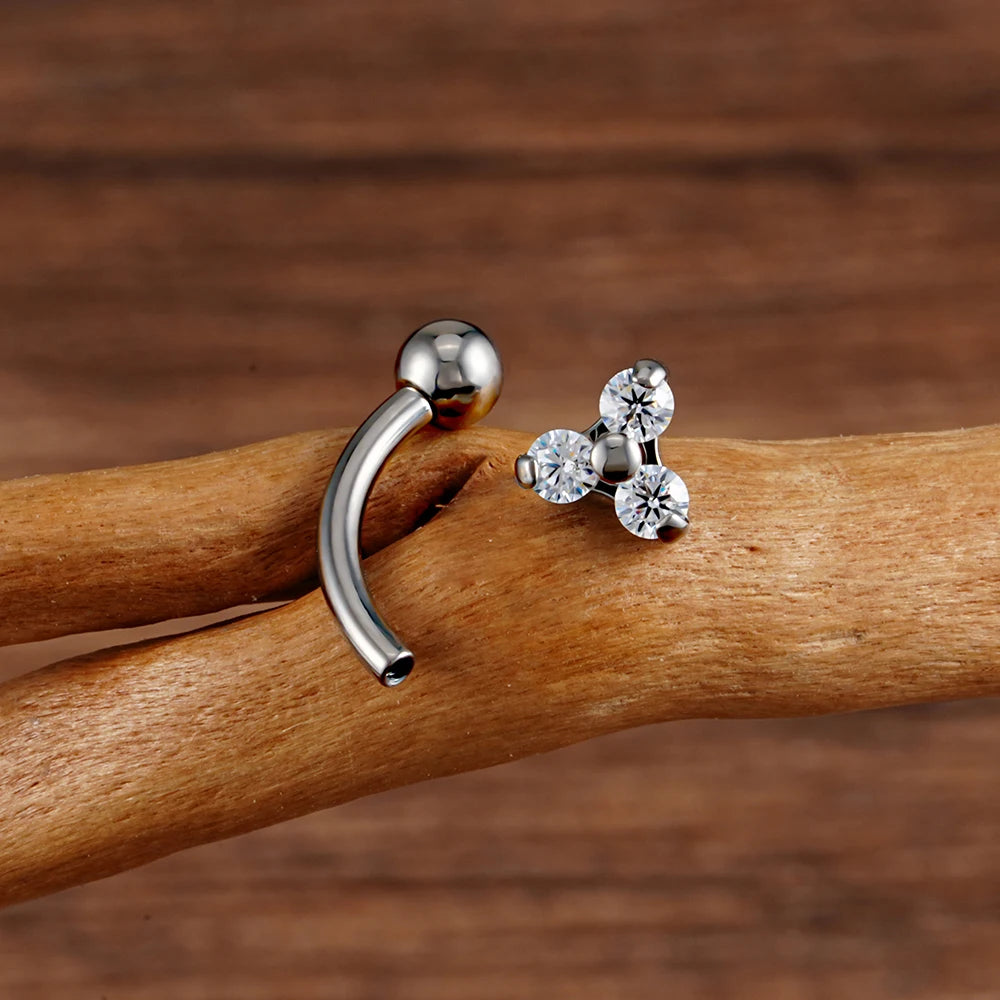Klarer gebogener Barbell mit drei klaren CZ-Steinen Titan-Bananen-Barbell Verkauf