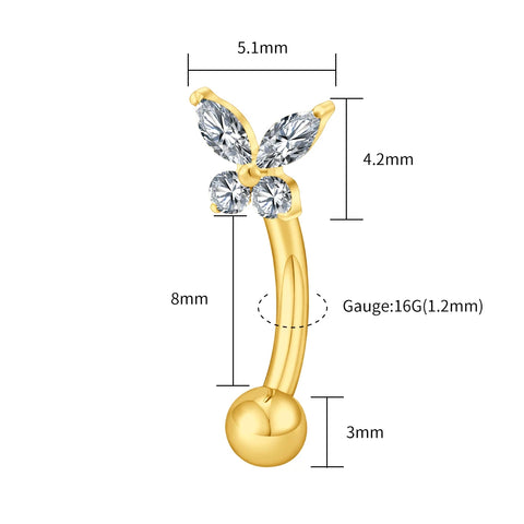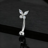 Butterfly eyebrow piercing curved barbell with clear cz stones butterfly rook piercing Sale