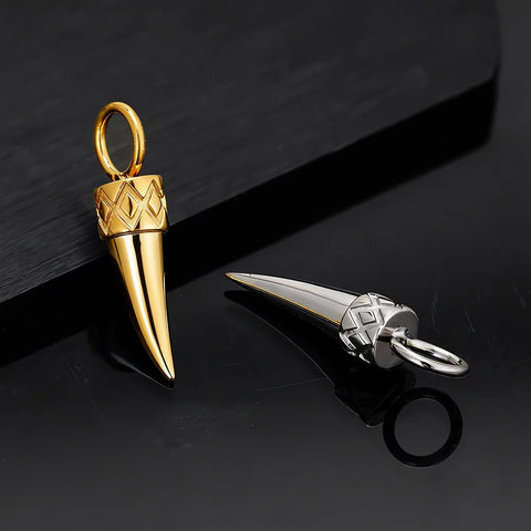 Wolf tooth pendant in gold and silver tooth charm made of titanium - Silver