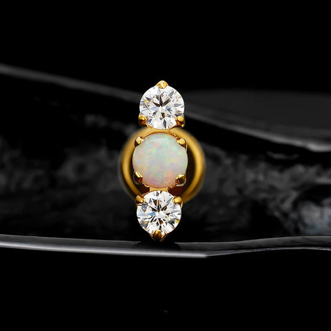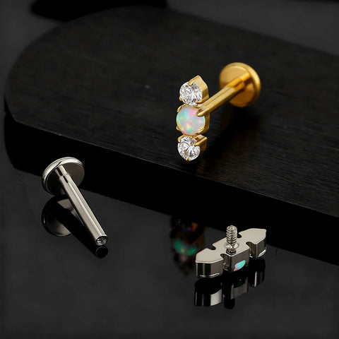 Piercing conque en opale avec pierres CZ transparentes, clou d'oreille à trois pierres en opale, piercing corporel En solde
