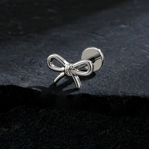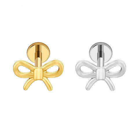 Bow nose piercing tiny and simple titanium butterfly bow labret stud bow piercing En solde