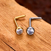 Anello al naso a forma di L calibro 20 con un perno al naso rotondo in pietra CZ in titanio argento e oro Vendita