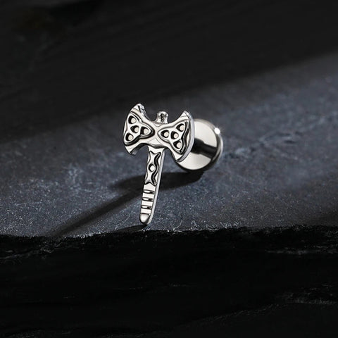 Double-bit axe piercing made of titanium unique stud earring セール