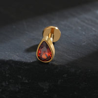 Druppelvormige piercing met een rode steen gotische en donkere piercing Halloween piercing sieraden - 16G/1.2mm / Goud x 4mm