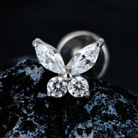 Labret piercing stift söt med en fjäril 16G implantatklass titan platt baksida CZ sten - 16G/1.2mm / Silver x 4mm